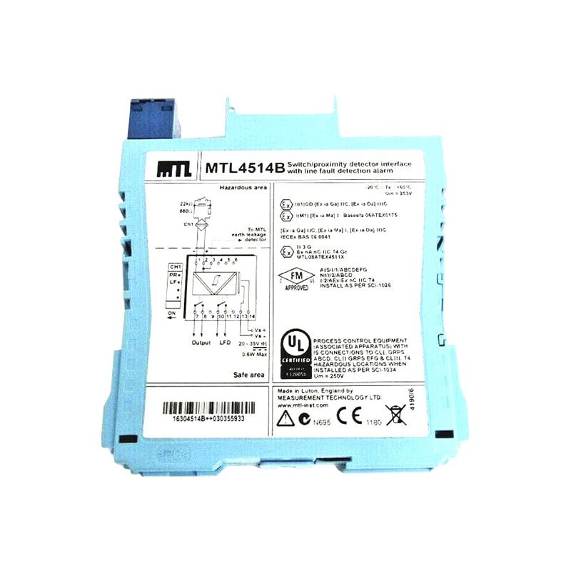 محصول MTL5514 برای کنترل بار در ناحیه ایمن از طریق رله طراحی شده است که توسط یک حسگر نزدیکی یا سوئیچ واقع در منطقه خطرناک کنترل میشود. این ماژول مجهز به قابلیت تشخیص خطای خط است که از طریق یک رله جداگانه اعلام شده و بر روی بالای ماژول نشان داده میشود. همچنین، MTL5514 دارای سوئیچهایی برای انتخاب معکوس فاز و فعالسازی قابلیت تشخیص خطای خط میباشد.